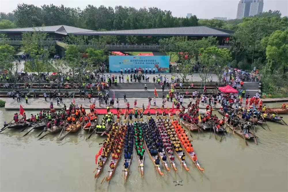6月12日上午,由浙江省文化和旅游廳、中共嘉興市委、嘉興市人民政府共同主辦的2021嘉興端午民俗文化節開幕式暨“五芳齋杯”南湖龍舟競渡、踏白船表演賽,在改造一新的西南湖展開激情澎湃的水上角逐。