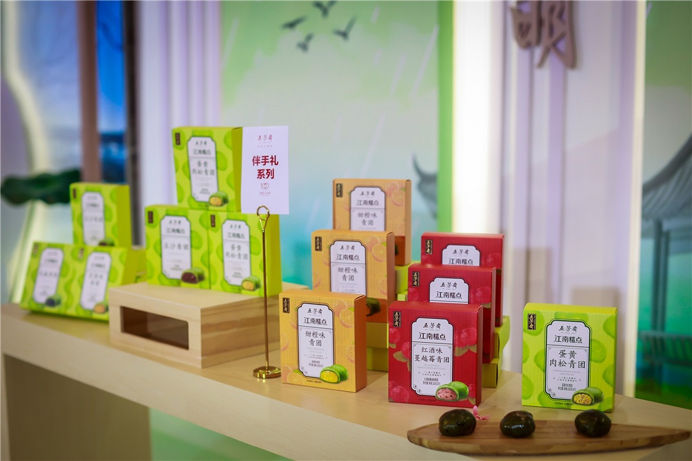 現場,五芳齋更是通過一場精致的漢服盛宴,以世紀芳華禮盒為載體,演繹非遺文化精粹,過端午,食“新五黃”,古法釀造黃酒、醬黃瓜、黃魚鰲、蟹黃醬、鮮咸蛋黃醬,匯聚中華好味道。