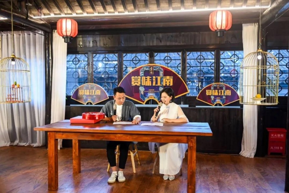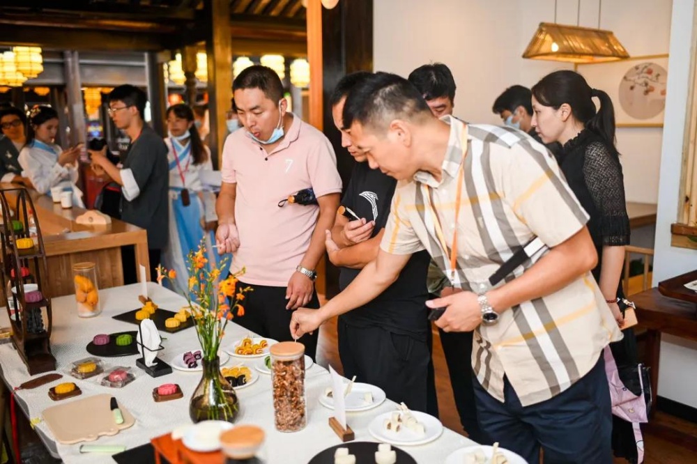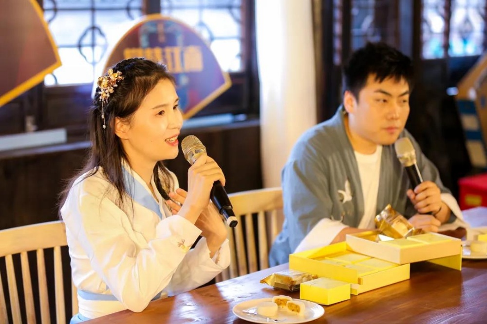 7月17日,以“賞味江南”為主題的五芳齋2020中秋新品沉浸私享會暨云直播會在嘉興·月河歷史文化景區的五芳齋嘉湖細點體驗館內圓滿舉行?;顒赢斎?,五芳齋各合作商代表、經銷商伙伴以及媒體嘉賓們匯聚一堂、賞味江南。