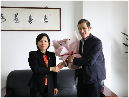 為倡導全社會尊重勞模、學習勞模、爭當勞模,弘揚勞動光榮、創造偉大的時代精神。嘉興市總工會聯合嘉興電視臺開展了“朵朵鮮花送勞?!被顒?,4月27日嘉興市總工會副主席高紅慧、財貿工會主席陳云建一行帶著鮮花走進五芳齋,慰問嘉興市勞動模范–魏榮明。