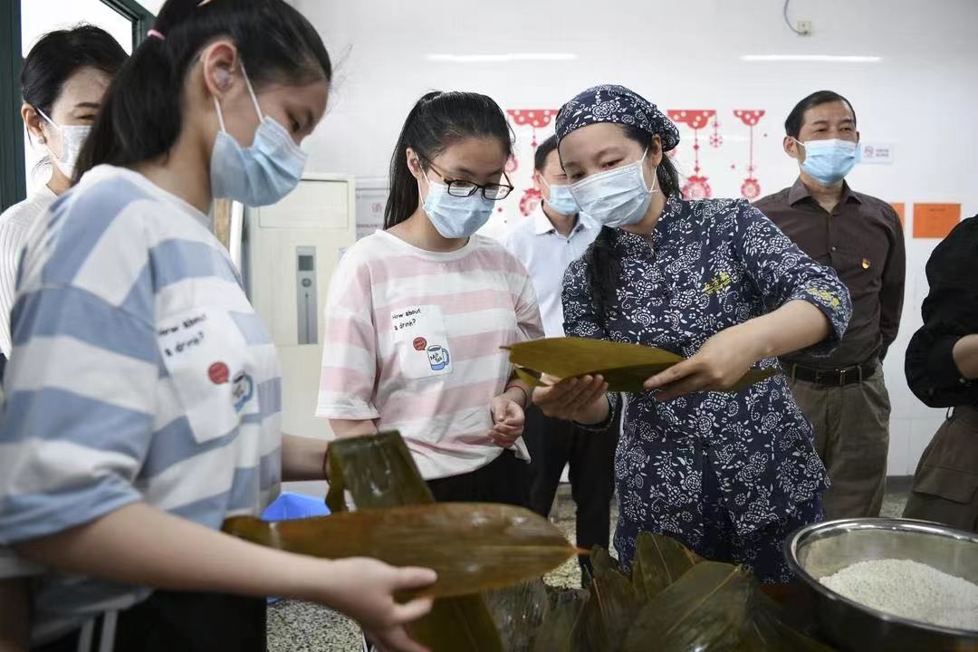 27日上午,五芳齋黨委、工會為嘉興特殊教育學校送去了各式口味的粽子,五芳齋粽子制作技藝非遺傳承人、“彩虹姐姐”及五芳齋志愿者代表也來到現場,向孩子們講述端午習俗,手把手教孩子們裹粽,傳承非遺文化,為孩子們送來節日的關愛。